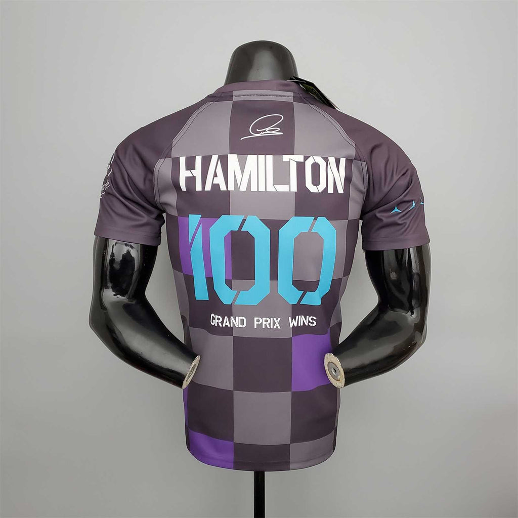 Vista a história. Vista o recorde. Garanta a sua camiseta comemorativa das 100 vitórias e celebre a grandeza de Lewis Hamilton!