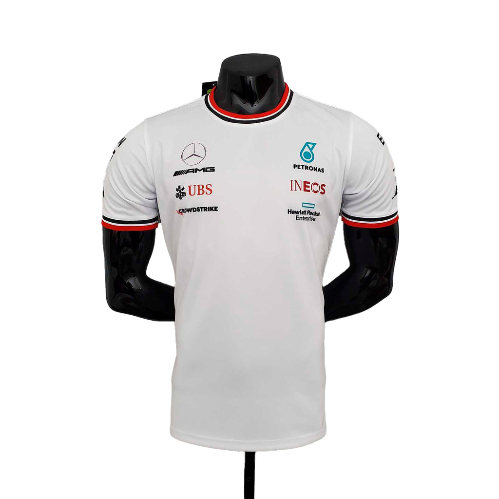 Viva a performance com esta camiseta padrão oficial da equipe Mercedes-AMG PETRONAS F1. Desenvolvida em tecido macio e confortável, a peça conta com design icônico que carrega os logos de equipe e patrocinadores da temporada, que se destacam no modelo exclusivo Mercedes-AMG. Modelagem ajustável e gola que se destaca nessa camiseta Mercedes F1 que vai se tornar sua nova peça favorita.