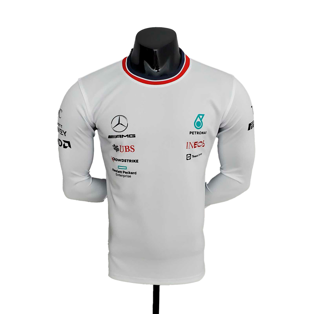 Viva a performance com esta camiseta padrão oficial da equipe Mercedes-AMG PETRONAS F1. Desenvolvida em tecido macio e confortável, a peça conta com design icônico que carrega os logos de equipe e patrocinadores da temporada, que se destacam no modelo exclusivo Mercedes-AMG. Modelagem ajustável e gola que se destaca nessa camiseta Mercedes F1 que vai se tornar sua nova peça favorita.