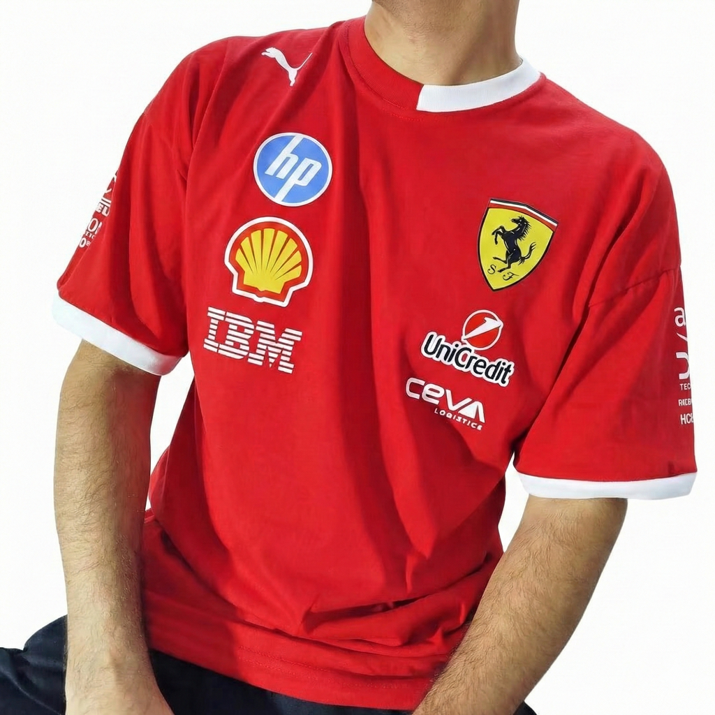 Esta camiseta de malha de algodão traz uma modelagem reinterpretada em estilo oversized para máximo conforto e um look moderno. Com o icônico Escudo Ferrari e o logo da Puma, este é um item obrigatório e imperdível para qualquer apaixonado por Ferrari.